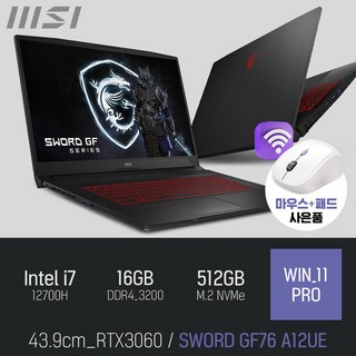 MSI Sword GF76 A12UE 블랙, WIN11 Pro, 16GB, 512GB, 코어i7을 사용해본 소감은 한마디로 '만족'입니다. 여러 쇼핑몰을 비교한 결과, 합리적인 가격에 뛰어난 품질을 제공하더군요.